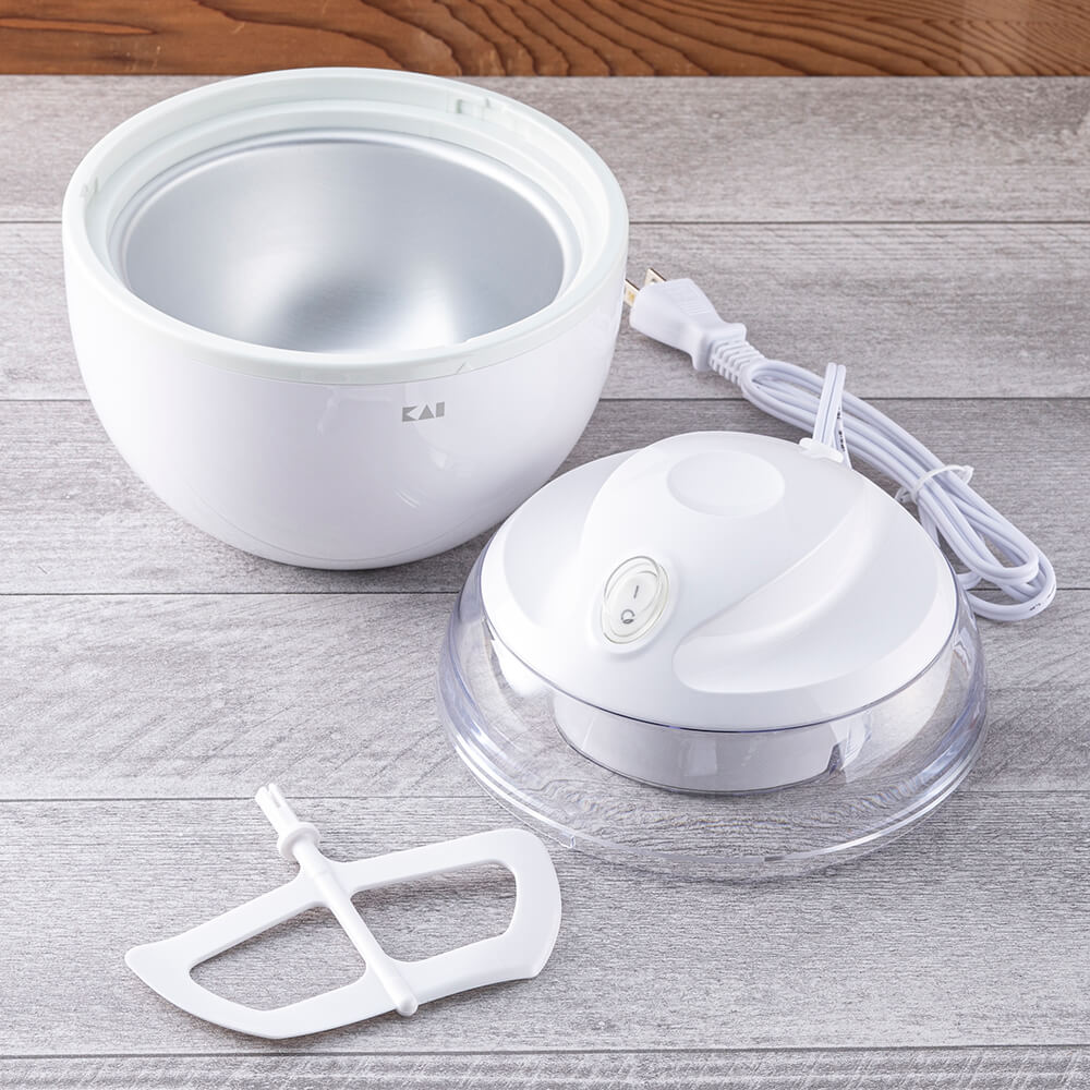 独自の羽が材料をじっくり万遍なく撹拌し、ほどよく空気を含んだ濃厚かつなめらかなアイスクリームがつくれます。デザインにもこだわり、丸く白い雪玉のようなビジュアルはプレゼントにもぴったり。ご自宅で、お手軽に手作りアイスを楽しむなら、このマシン。お好みの材料で、好きな時に好きなだけ♪コストパフォーマンス抜群のアイスクリームメーカーです。