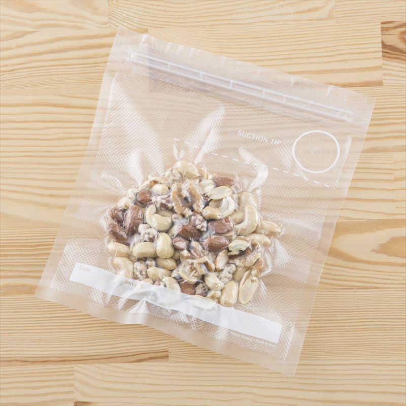 解凍後の「いかにも冷凍っぽいにおい」を抑えることができます。「冷凍焼け」「冷凍臭」の原因は、食材の周囲の霜です。解凍する際、この霜が食材にニオイを移してしまうのです。真空保存袋で密閉することで、冷凍臭の原因となる食材につく霜の発生を抑えることができます。