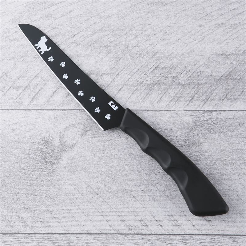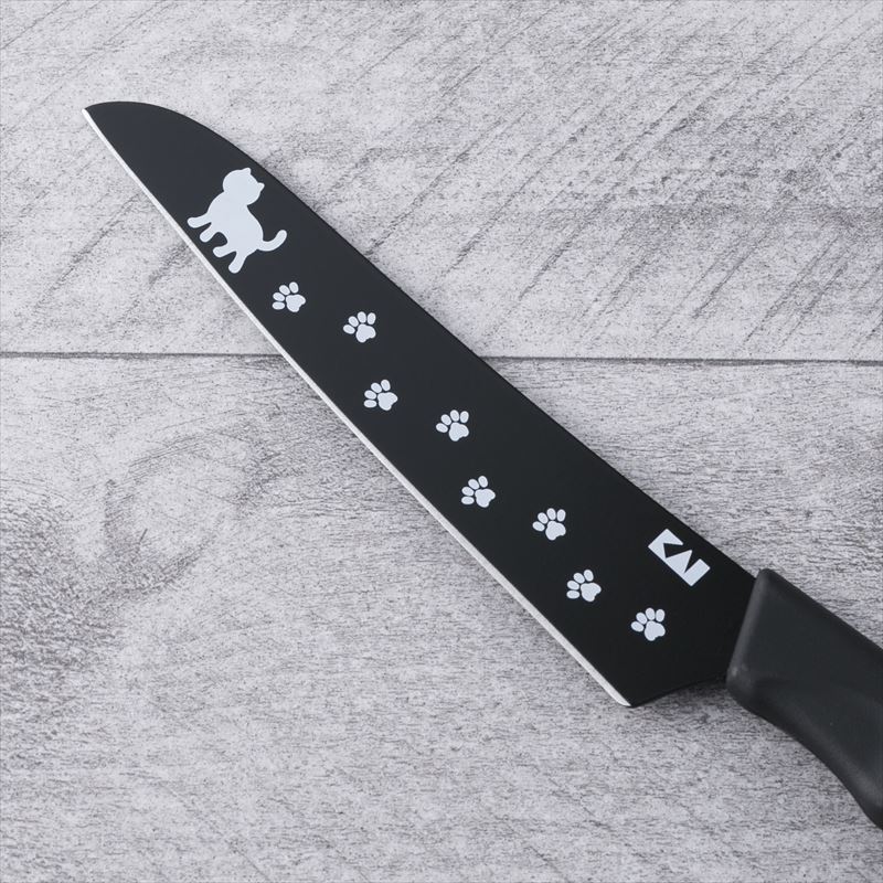 - “ねこと一緒に楽しくお料理!”当社売れ筋商品の性能を活かしつつ、キッチンの雰囲気を邪魔しない形でネコモチーフを取り入れました。ネコ好きの方もそうでない方も『欲しい!使いたい!』と思える、ほどよいネコ感を大切にしています。果物を切ったり皮を剥くのに最適な刃の向きと握りやすい柄の角度を追求しました。刃の出し入れがスムーズで扱いやすい安全なサヤ付きです。刃体はお手入れのしやすいコーティング刃。ネコの足跡が1cm刻みになっていて、切る際の目安になります。