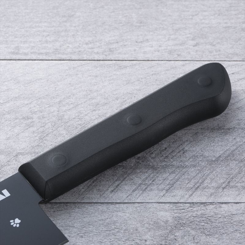 - “ねこと一緒に楽しくお料理!”当社売れ筋商品の性能を活かしつつ、キッチンの雰囲気を邪魔しない形でネコモチーフを取り入れました。ネコ好きの方もそうでない方も『欲しい!使いたい!』と思える、ほどよいネコ感を大切にしています。刃体にはサビに強いステンレス刃物鋼を採用し、お手入れのしやすいコーティングがなされています。ネコの足跡が1cm刻みになっているので、切る際の目安になります。使いやすい165mmの刃渡りです。