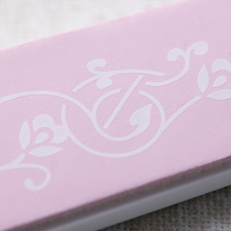 ツメの表面を整えるツヤ出しの下地作りに最適な、粗目・中目・細目の3WAYタイプ。蔦と花の柄をあしらったフェミニンなデザインです。