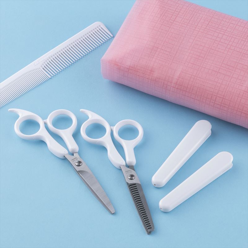 - 【ハサミ】刃部:ステンレス刃物鋼、ハンドル:ABS樹脂(抗菌剤含有)、 キャップ:ABS樹脂 【コーム】ABS樹脂 【ケープ】EVA樹脂
