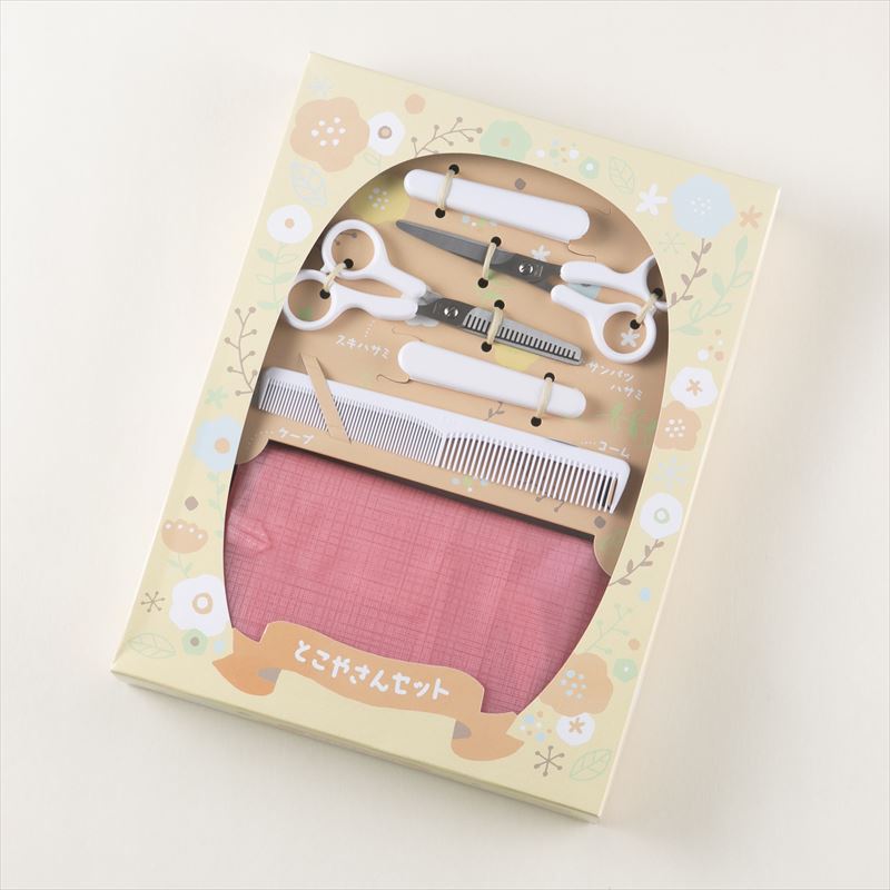 小さなお子様ためのカット・スキハサミ・クシ・ケープの4点セット。