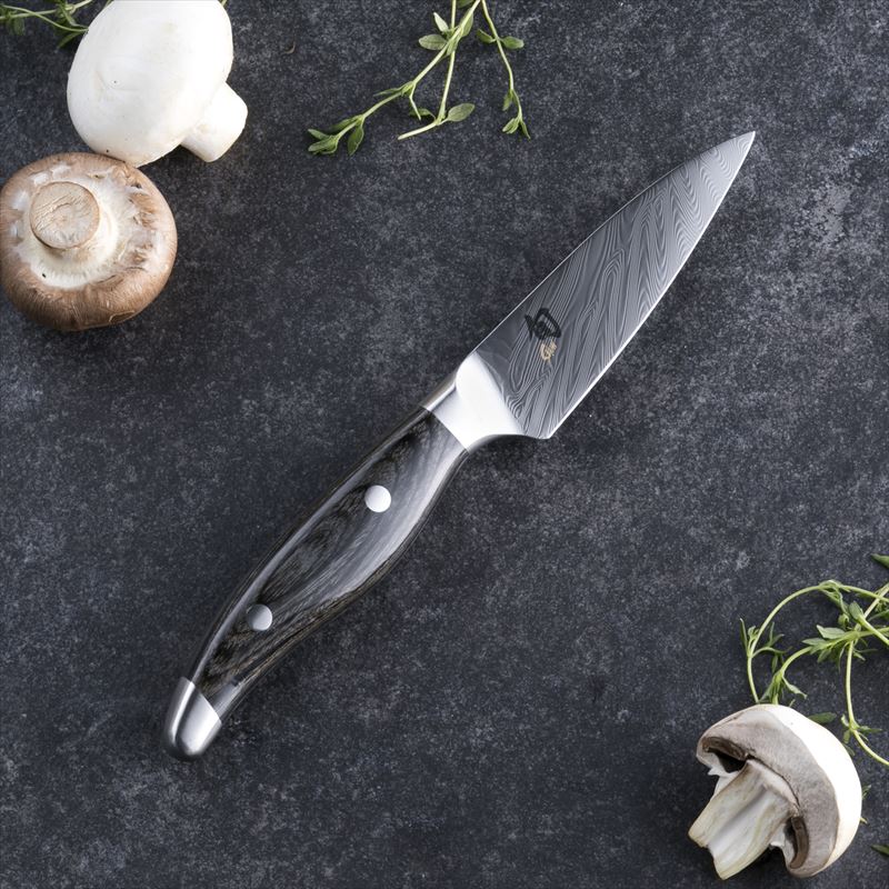 使ううちに鋼材硬度の差により刃先に微小なセレーション(鋸刃)を生み出し、持続性のあるすぐれた切り味をもたらします。パーリングとは刃渡りが短めのペティナイフです。俎上はもちろん、素材を手に持って切るときに扱いやすいので、小ぶりの野菜やフルーツの調理にも重宝する、使い勝手の広いアイテムです。