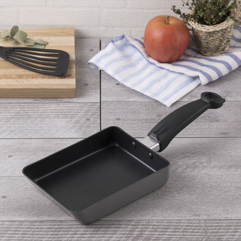 おすわりねこのにぎりやすいハンドルが特長の玉子焼き器です。