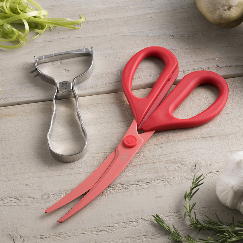 洗い物はひとつでも減らしたい!そこで活躍するのが、貝印のカーブキッチンバサミ。料理家が提案したこのハサミは、さまざまな食材を切ることに適したカーブ状の刃先が特徴です。野菜やお肉、加熱した厚みのある肉料理、お鍋の中で調理中の食材もらくらくカット。