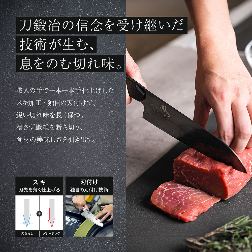 ※包丁を研ぐ際はシャープナーをご使用いただくことを推奨いたしますが、製品のデザイン特性上、シャープナーの構造によっては、コーティングが剥がれる可能性や、傷が付く可能性がございますのでご注意ください。