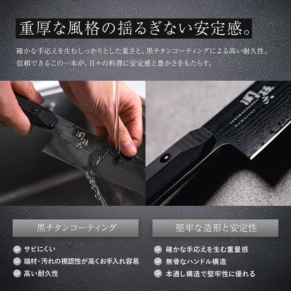 黒チタンコーティングを施しており、サビにくく耐久性も高いです。