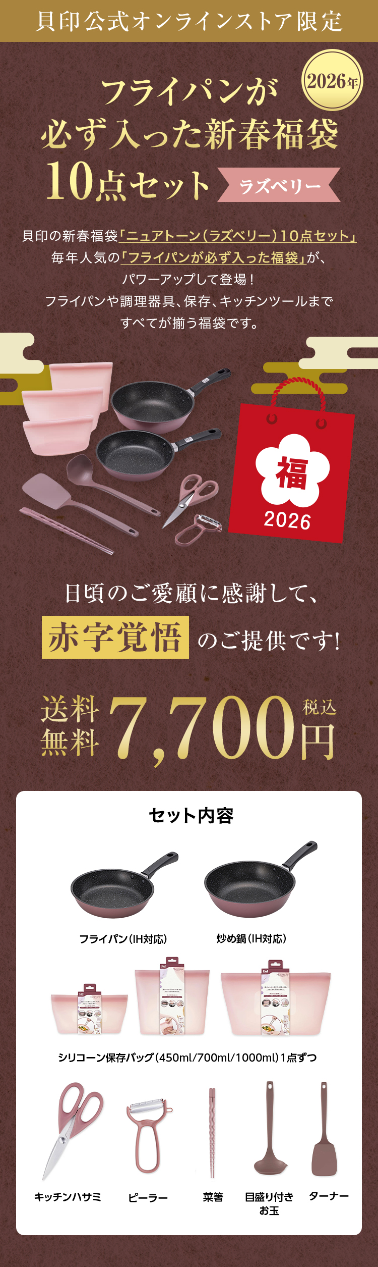 毎年人気の「フライパンが必ず入った福袋」が、パワーアップして登場!新年、新しい調理器具で迎えるのはいかがですか?