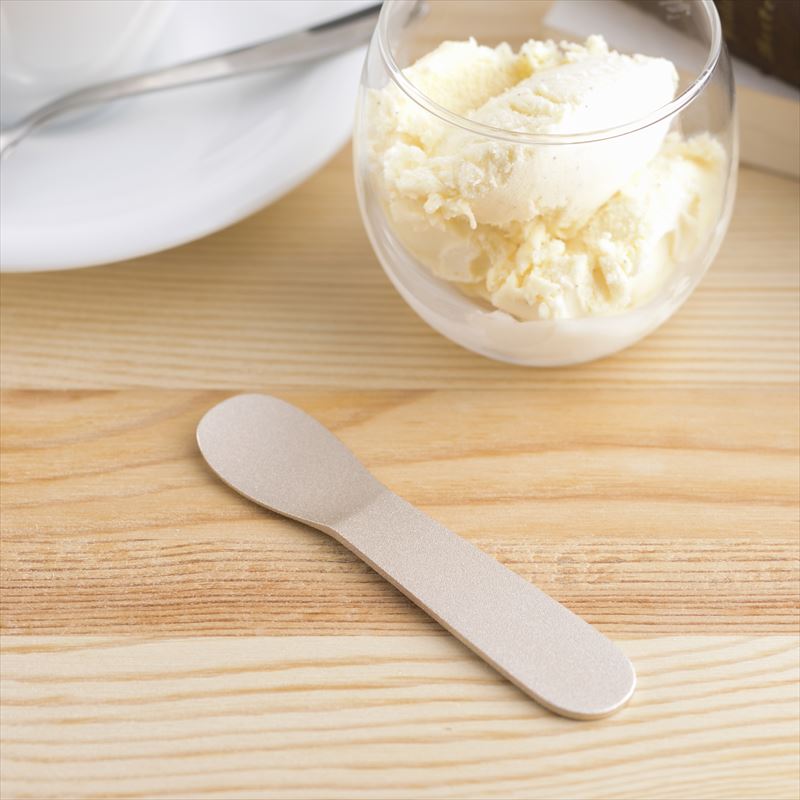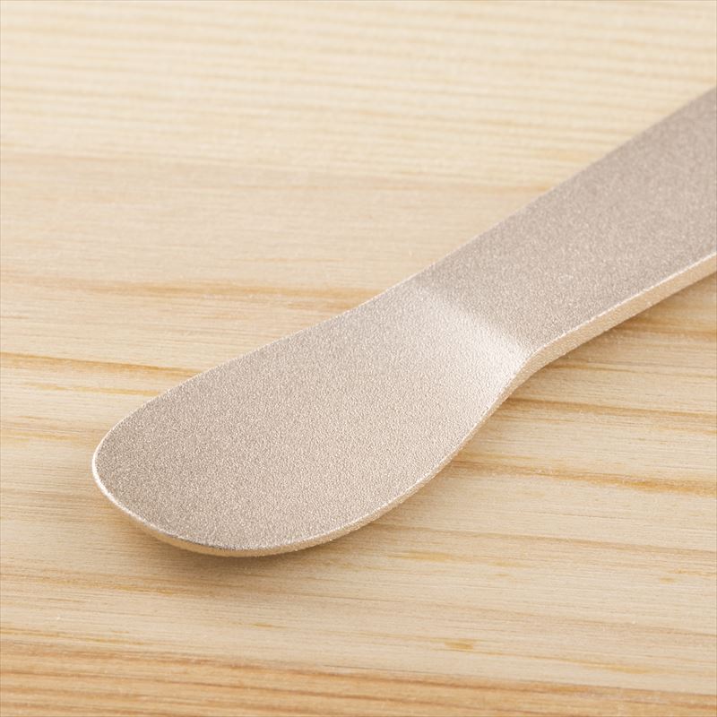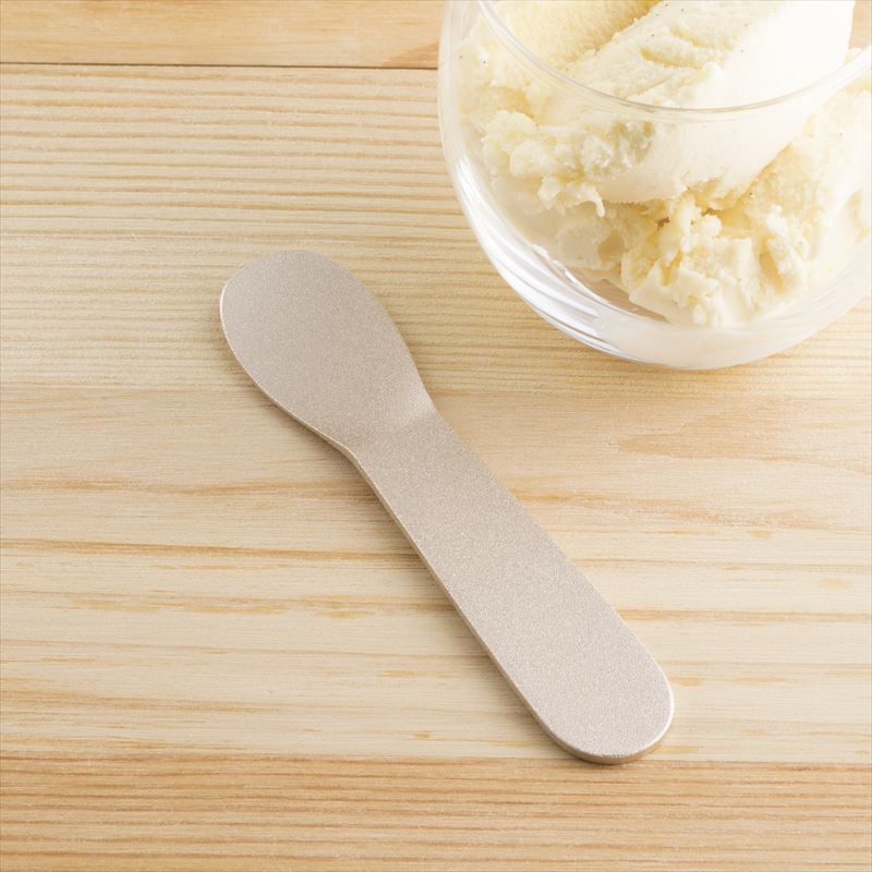 ステンレスの約12倍の熱伝導効率を持つアルミニウム素材で、冷凍庫から出したてのカチカチアイスもしっかりすくえます。先端部はより熱が伝わりやすく、スムーズなアイスへの入りを考慮し、薄く設計しました。