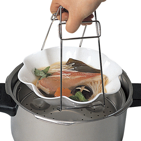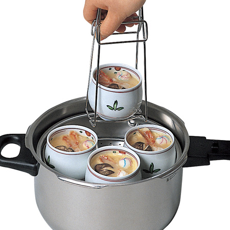 蒸し物調理後など熱い器の取り出しに便利な茶碗蒸しホルダーです。