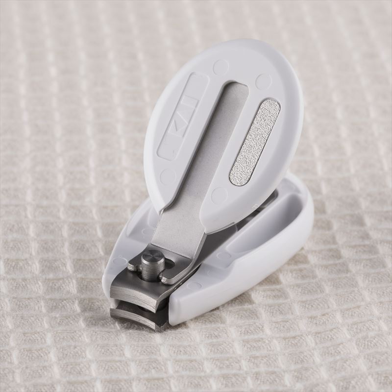 赤ちゃんの小さな指に合わせた、カワイイたまご型のツメキリ。ツメが飛び散りにくいストッパーケース付きです。