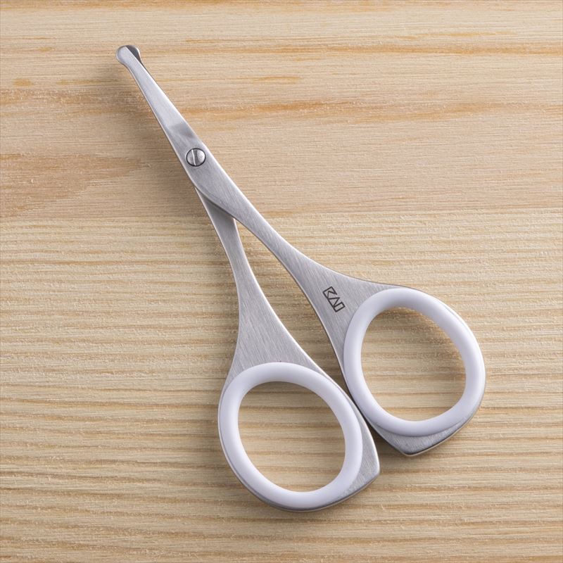 女性向けの指穴サイズで、すべりにくい樹脂リングを装着したオール金属の鼻毛用ハサミです。肌に優しい先丸刃。サビにくいステンレス製です。