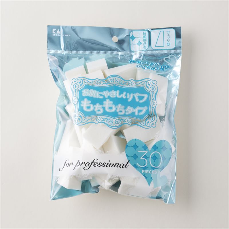 お肌にやさしい肌触りのファンデーションパフのお得な大容量です。アイメイクや小鼻の周りなどの細かい部分に適しています。