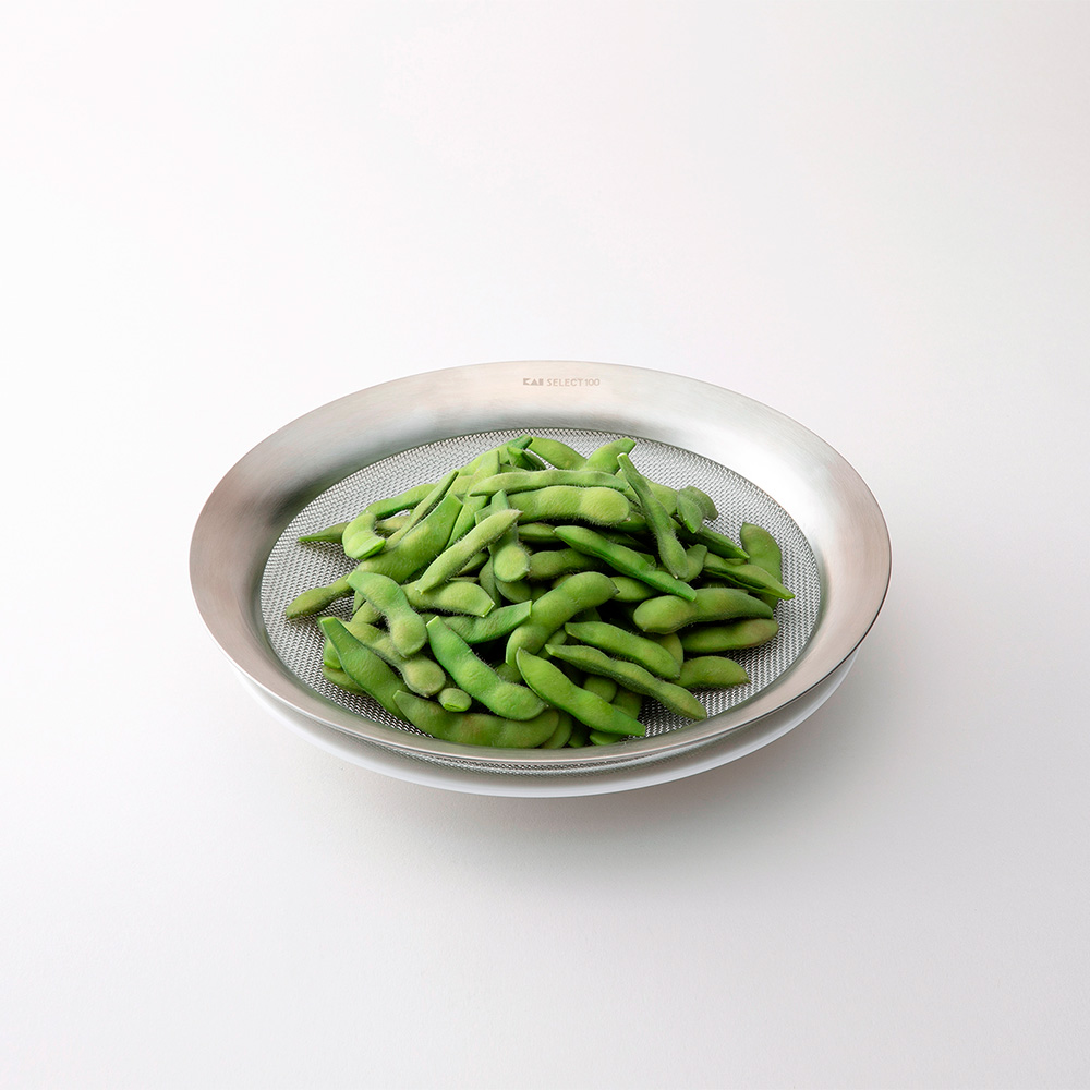 目詰まりしにくい網目、変形しにくく耐久性のある鋼材を採用しています。同サイズのボウル・ざる・浅型ざるは重ねて使用できます。