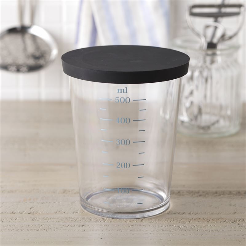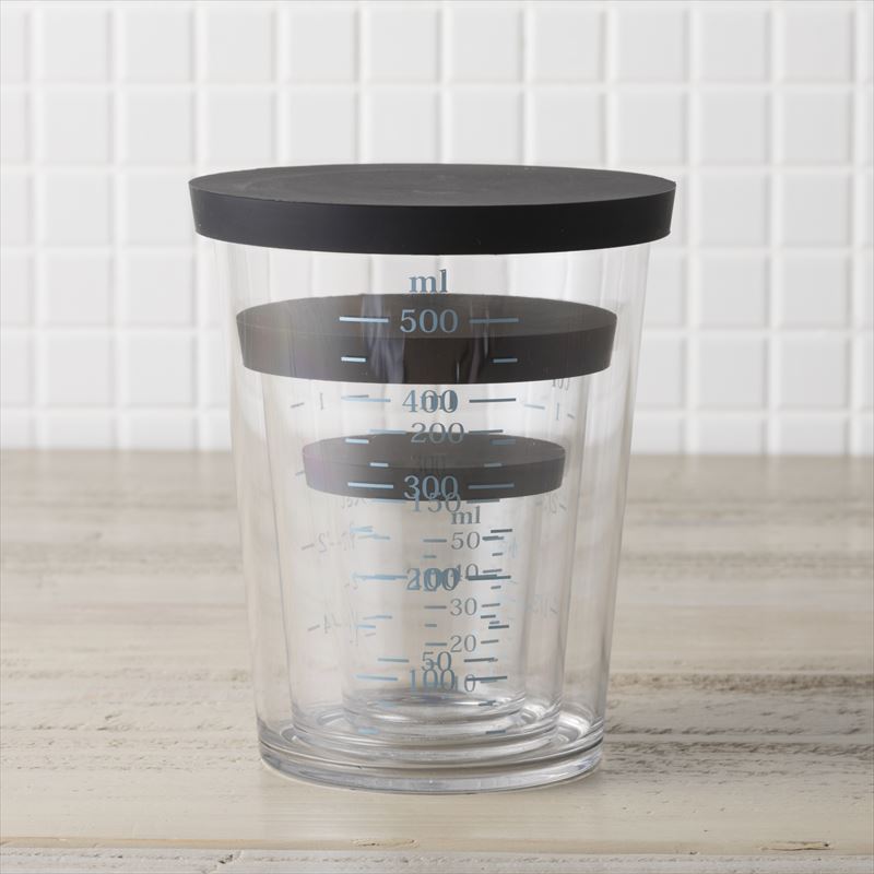 同シリーズのフタ付計量カップと重ねて収納できます。