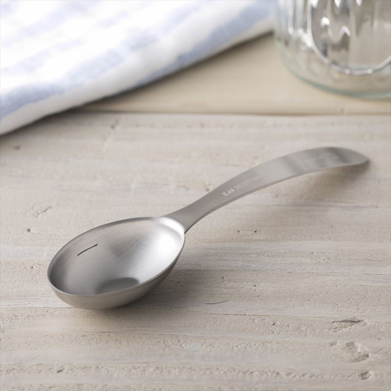 粘性のある味噌などのペースト状の調味料も測りやすい、緩やかなカーブ形状の計量スプーンです。