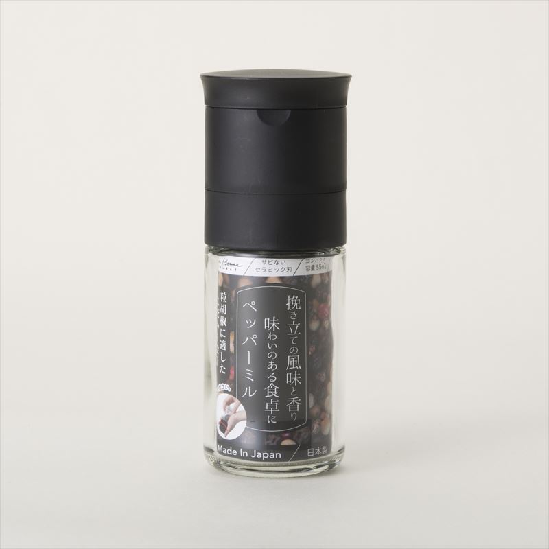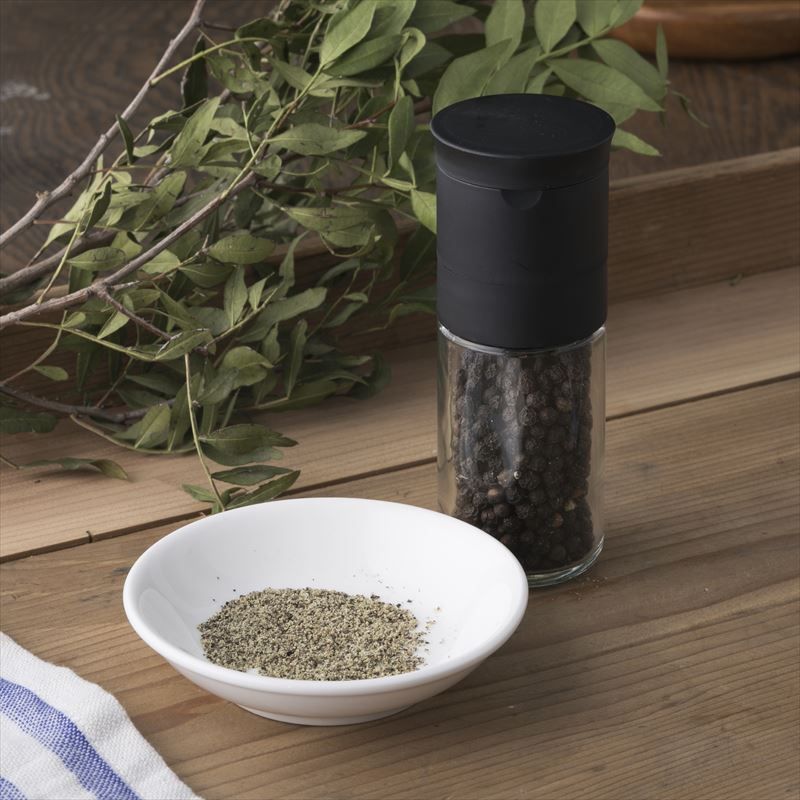 粒子が細かく均一性の高い日本製のセラミックミルを採用。手に収まりやすく使いやすい、卓上でも場所を取らないコンパクトサイズです。