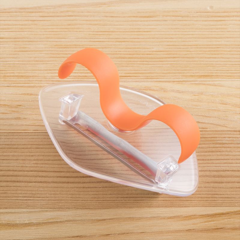 - フック:ポリプロピレン(耐熱温度110℃) 本体:透明ABS樹脂(耐熱温度80℃)、刃部:ステンレス刃物鋼