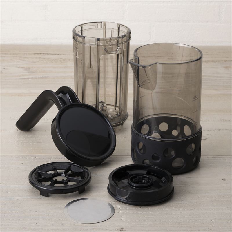 - ハンドル・フィルターホルダー:ポリプロピレン(耐熱温度110℃、耐冷温度-30℃) 内ポット・タンブラー:飽和ポリエステル樹脂(耐熱温度110℃、耐冷温度-30℃) フィルター:18-8ステンレススチール、ガラス玉:ガラス ガスケット・すべり止め:シリコーンゴム(耐熱温度150℃、耐冷温度-30℃)