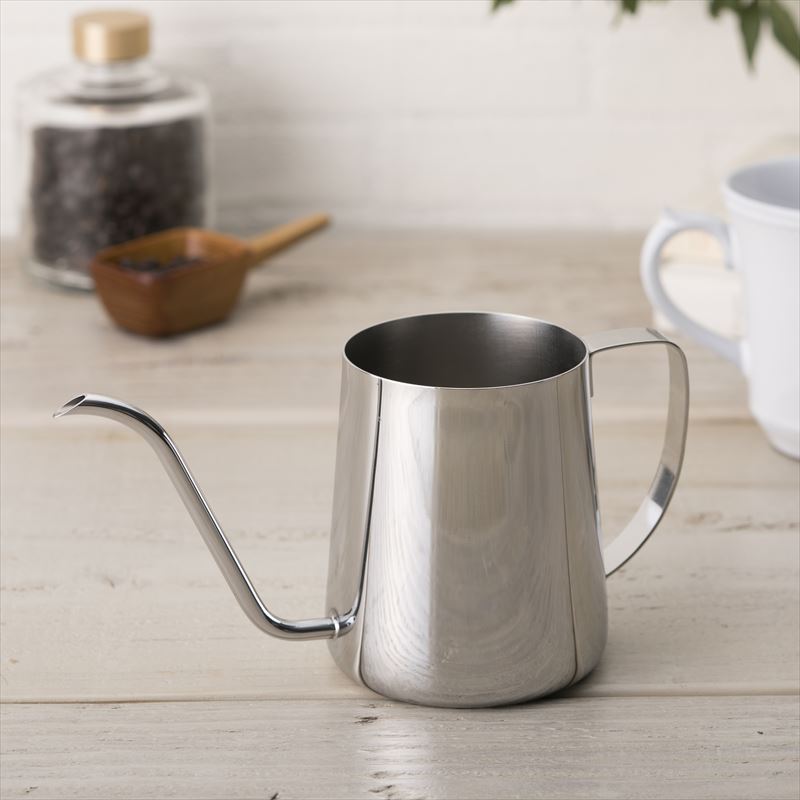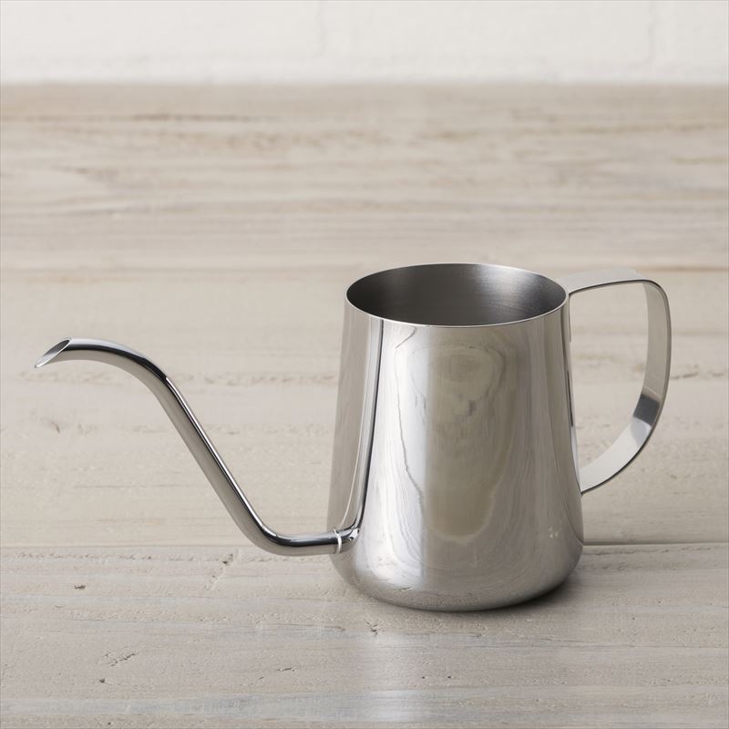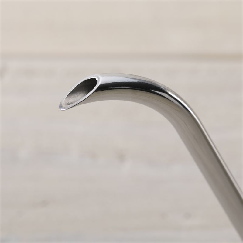 注ぎ口が細く、ドリップする際のお湯の量を細かくコントロールできます。水切れ抜群の細長口とわずかな反り返りがドリップ時の繊細な動きをサポートします。