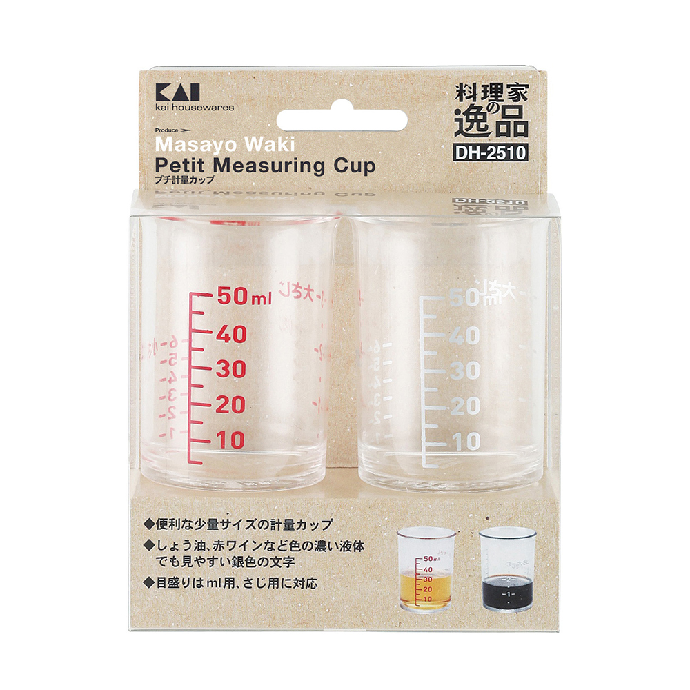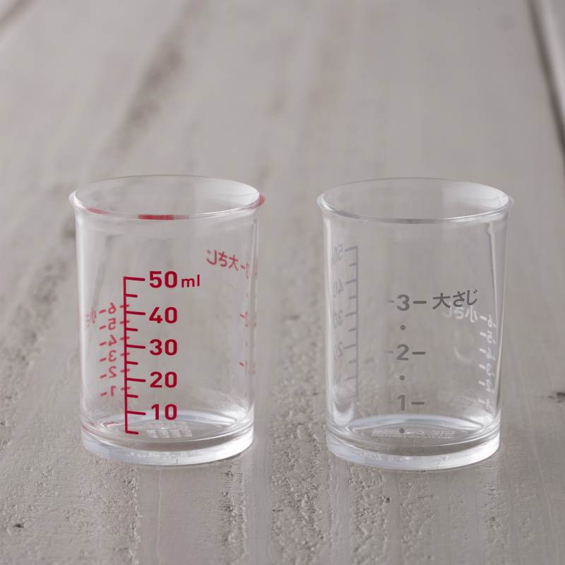 ・透明液が見やすい赤の目盛と醤油など濃い色の液が見やすいシルバーの目盛の2個セット。
