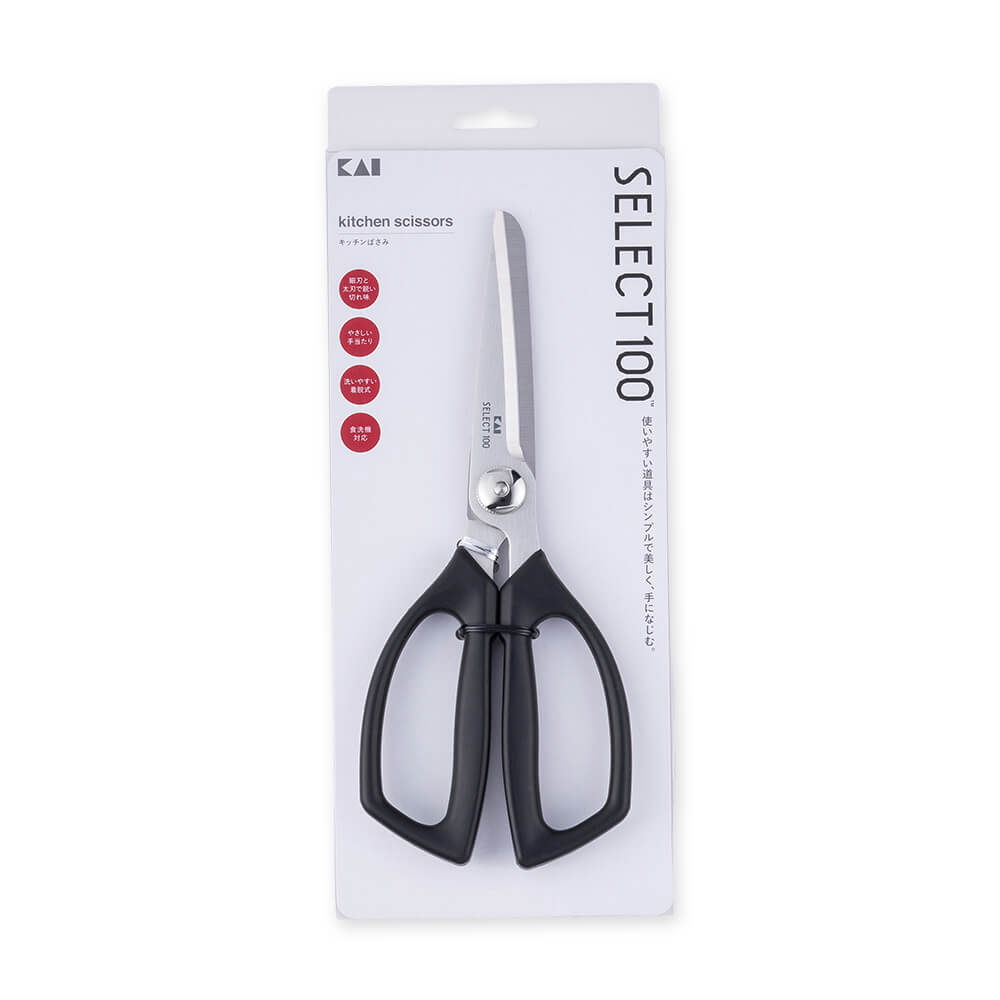細刃と太刃を組み合わせ、丈夫な造りと鋭い切れ味を実現したキッチンバサミです。3.0mm厚の厚刃で滑りにくいセレーション刃を使用。