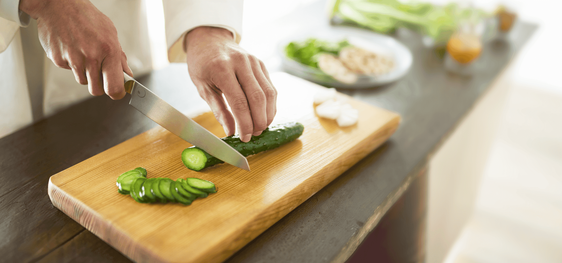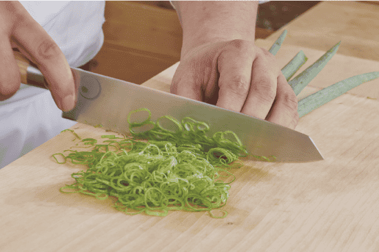 切れ味で香りが、刻む幅で食感が決まります。七寸の刃先の重さがリズミカルな動きを助け、食材を等間隔に刻むことができます。