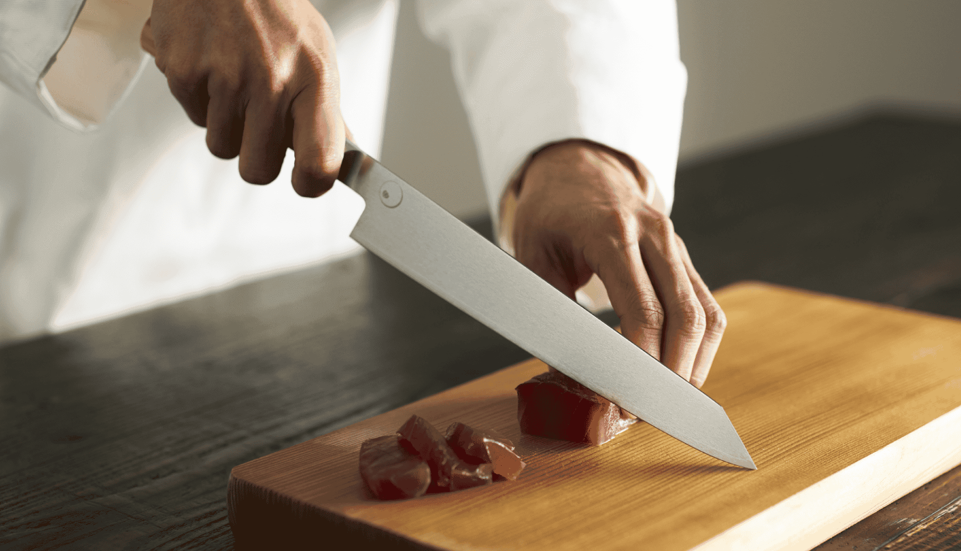 お造りの味は酸化が進む切り分けてからの時間と、細胞壁を出来るだけ壊さない切断面の滑らかさで決まります。この刺身包丁は簡単なお手入れで、プロ並みの滑らかな切断面を実現します。